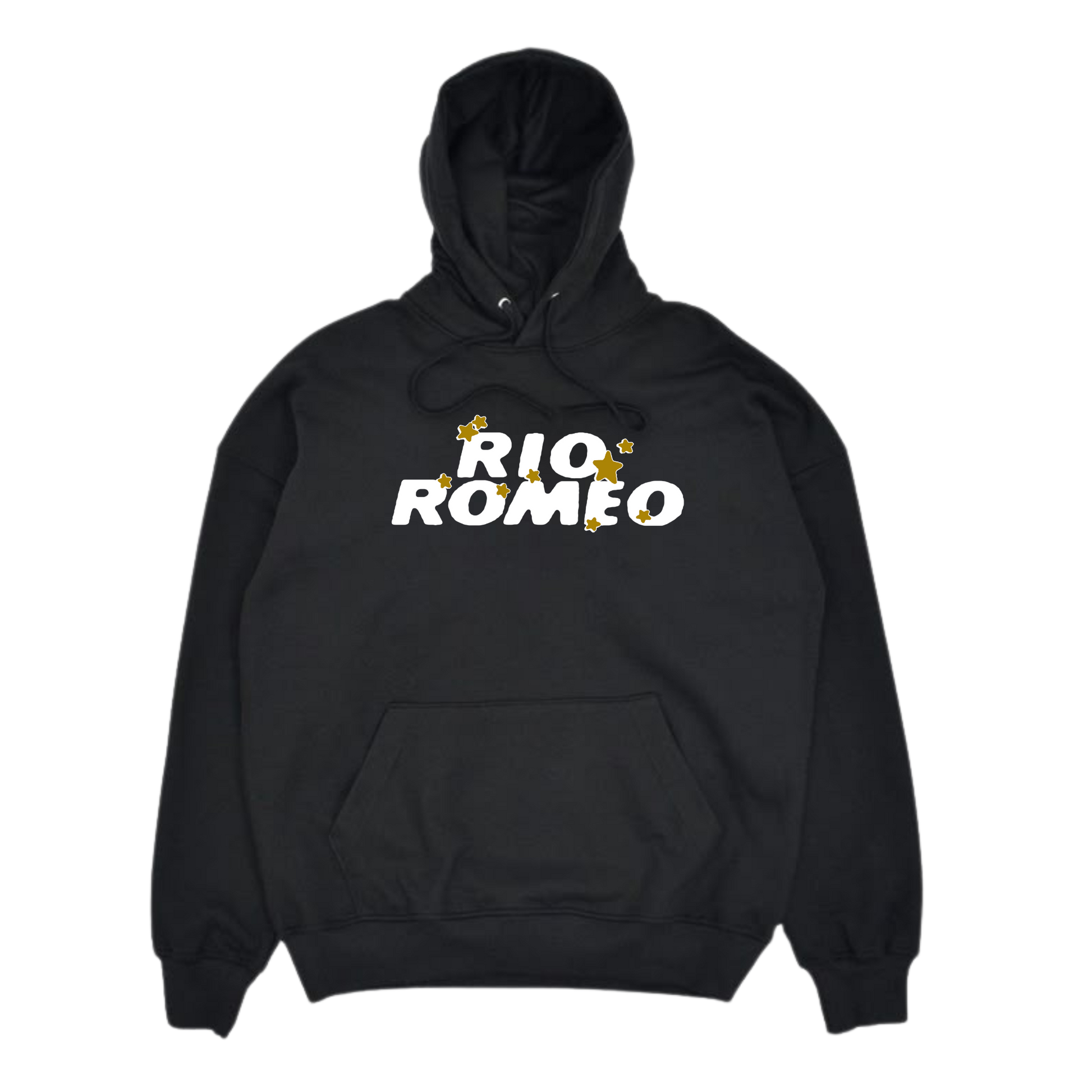 Screen-printed on a black hoodie. Ethically made in Brea, California and printed in Claremont, California.
